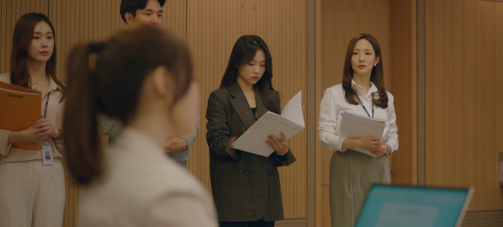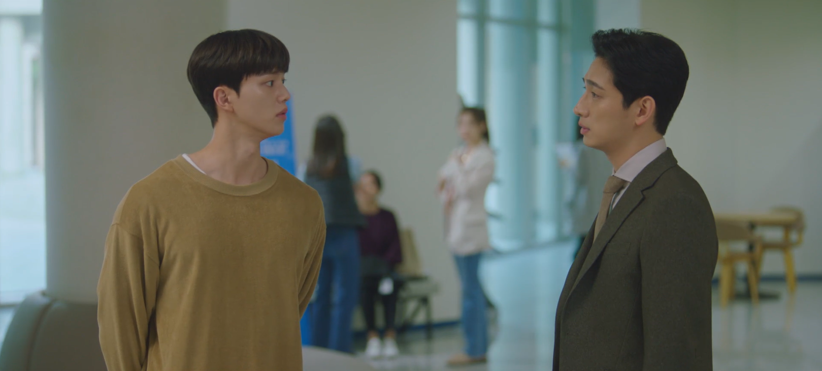 그 때 이시우가 들어와 진하경을 불렀어요. 국장님이 호출했다며 진하경을 빼내는 모습이었죠. 알고보니 국장은 부르지 않았고, 그냥 이시우가 센스있게 진하경을 빼내준 것이었죠.