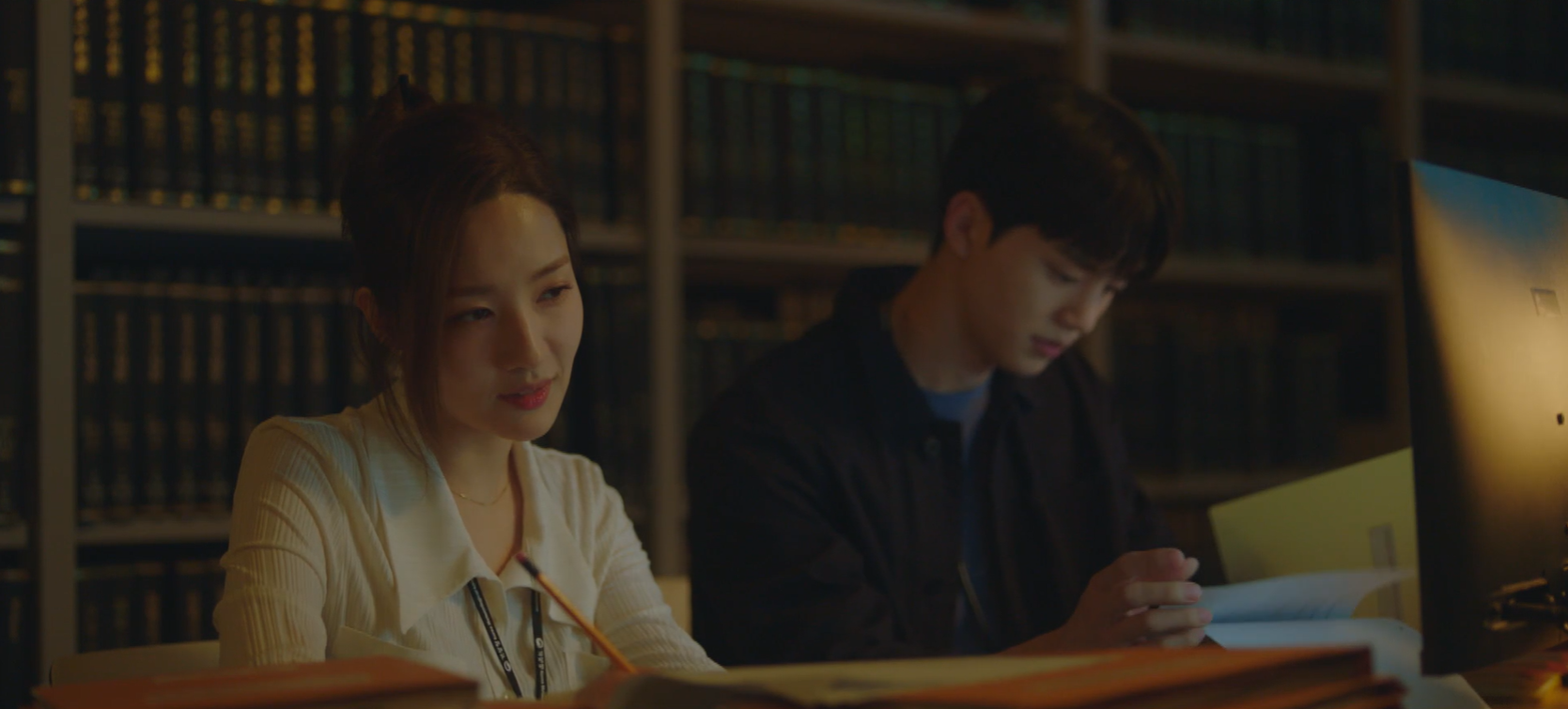 밤새 연구해 알아낸 것으로 진하경에게 힌트를 주는 이시우. 결국 해결되지 않았던 이슈는 이시우의 힌트로 진하경이 해결해낼 수 있었습니다.