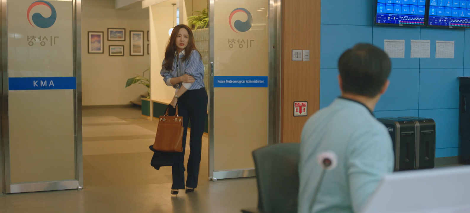 김수진은 이시우가 기상청 사람과 사내연애를 하는 것 같다고 의심하는 모습이었구요.