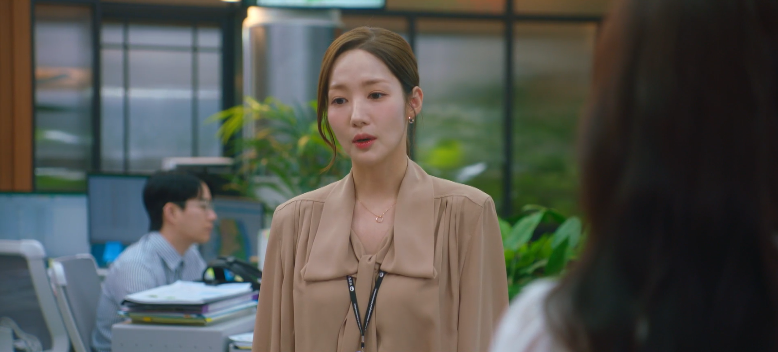 김수진은 오존주의보 관련한 진상 전화를 대응하고 있었어요. 그 모습을 본 오명주는 전화를 대신 받아 대신 화를 내주었죠. 그런데 그 일로 민원이 들어가게 되었습니다.