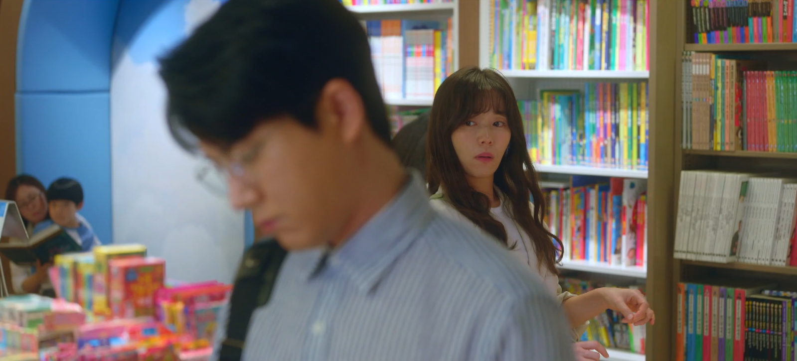 진태경은 본인이 쓴 동화책 도시악어가 진열되어 있지 않고 창고에 있었던 것을 알고 속상해하는 모습이었어요. 진태경이 내려놓은 동화책을 지나가던 신석호가 읽기 시작했죠. 신석호가 그 책을 보며 웃는 것을 보고 진태경은 다가갔어요.