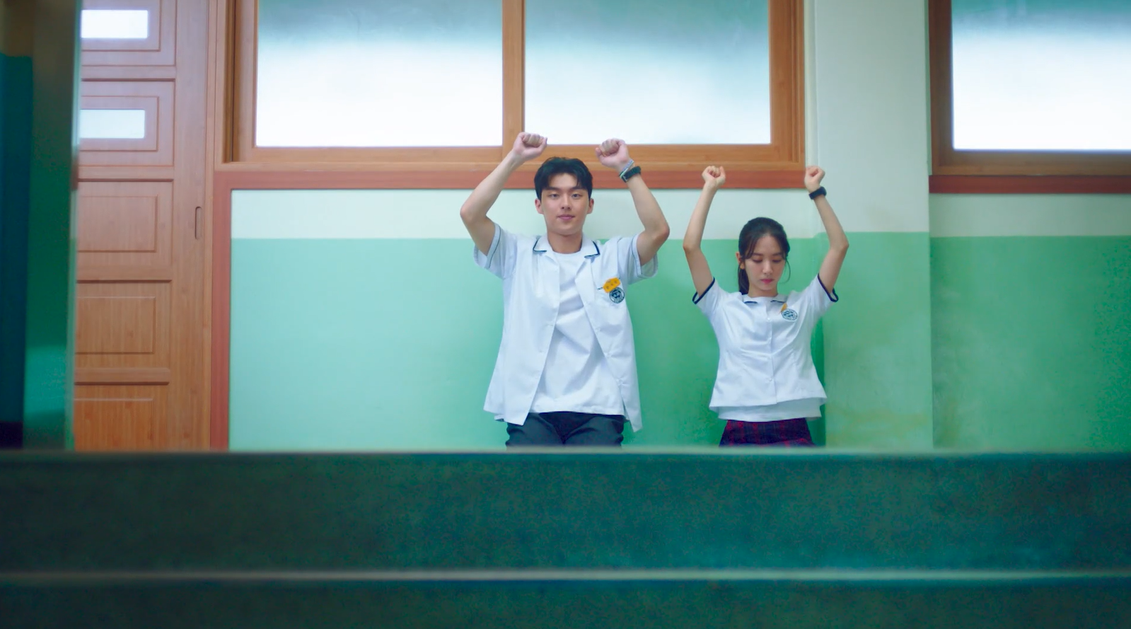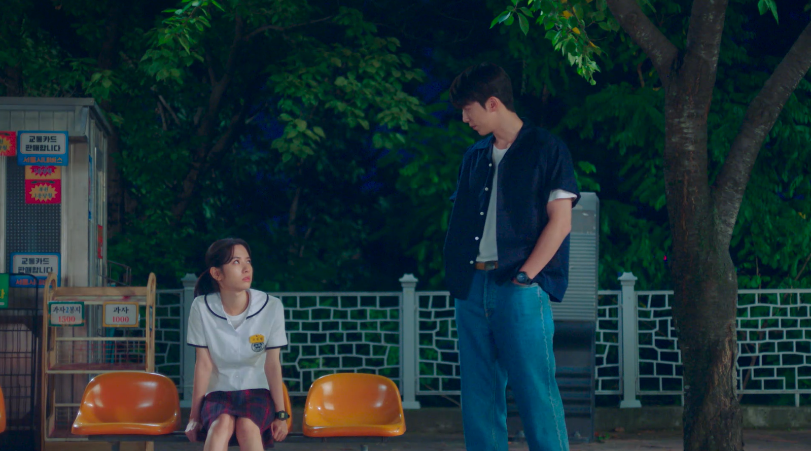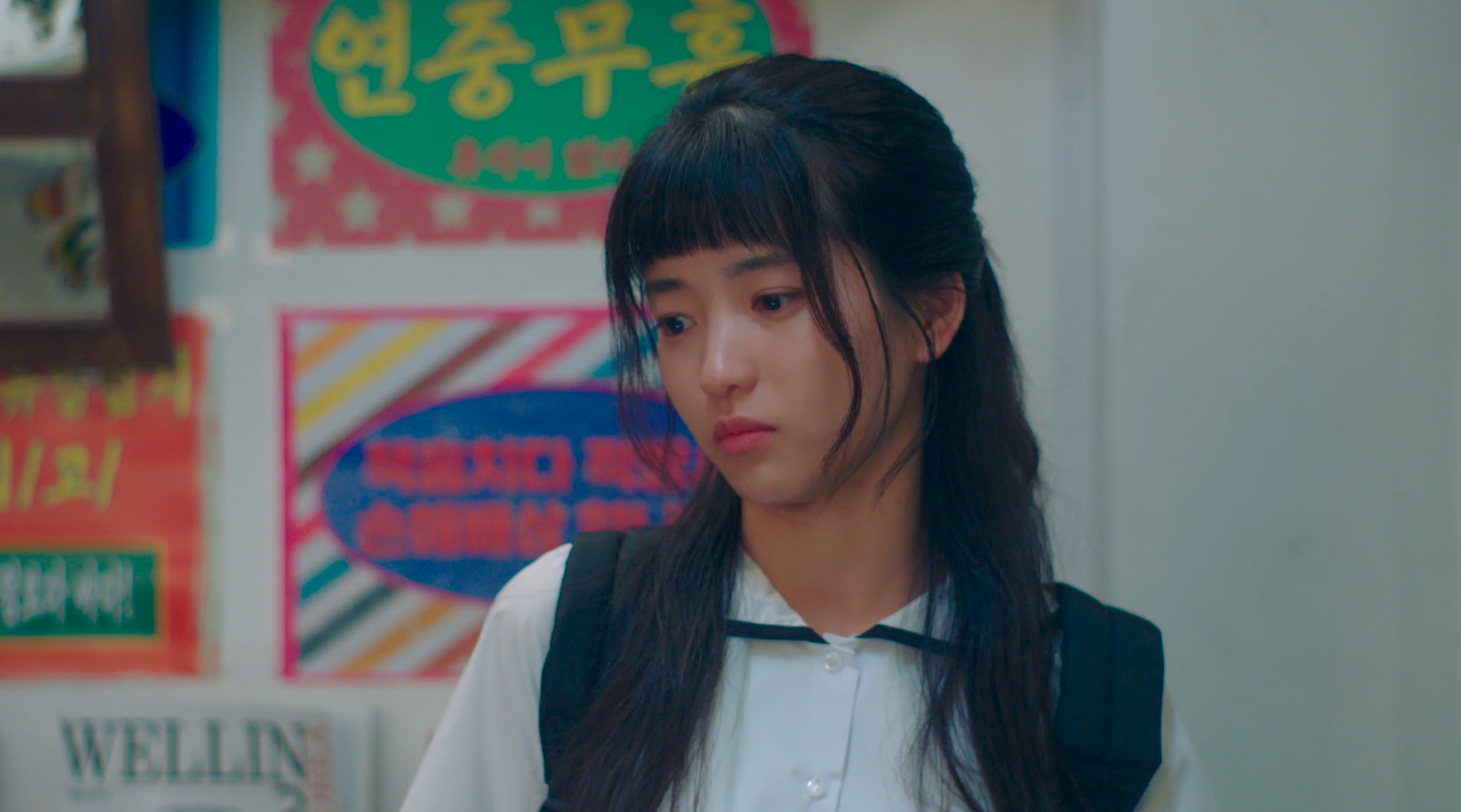 수업일수를 채우러 나간 고유림. 나희도와 같은 반이었어요. 선생님은 고유림이 교과서가 없는 것을 보고는 복도에 나가 손들고 무릎꿇으라고 했고 또 교과서가 없었던 나희도도 따라나가려 했어요. 그 때 문지웅이 나희도에게 교과서를 던져주고는 자기가 대신 나갑니다. 고유림과 같이 벌을 서고 싶었기 때문이죠.