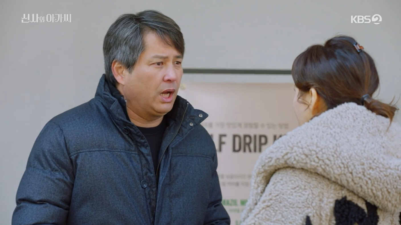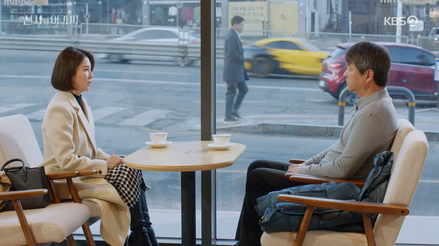 차연실은 마동필에게 박수철이 어디에 있었냐고 물어 박수철과 애나킴이 있던 카페쪽으로 갔어요. 두 사람이 함께 있다 헤어지는 모습을 목격하고는 박수철에게 저 여자를 왜 만나냐며 따져댔죠. 박수철은 단단이 일 때문에 만난거라며 둘러댑니다.