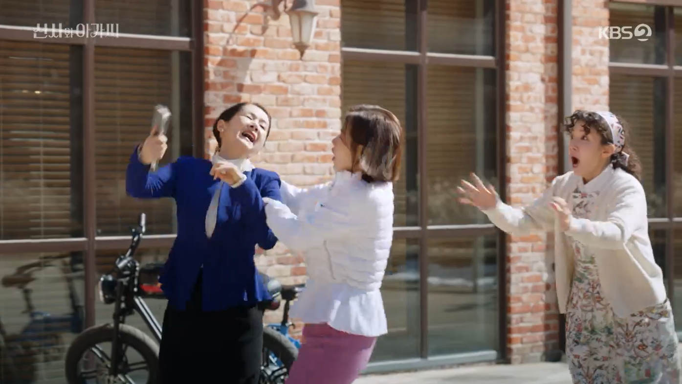 이 모습을 모두 지켜본 김실장은 다이어리에 모두 기록을 하며 회장님에게 보고를 하겠다고 했어요. 그러자 조사라는 다이어리를 내놓으라며 김실장의 머리끄댕이를 잡는 모습이었죠.