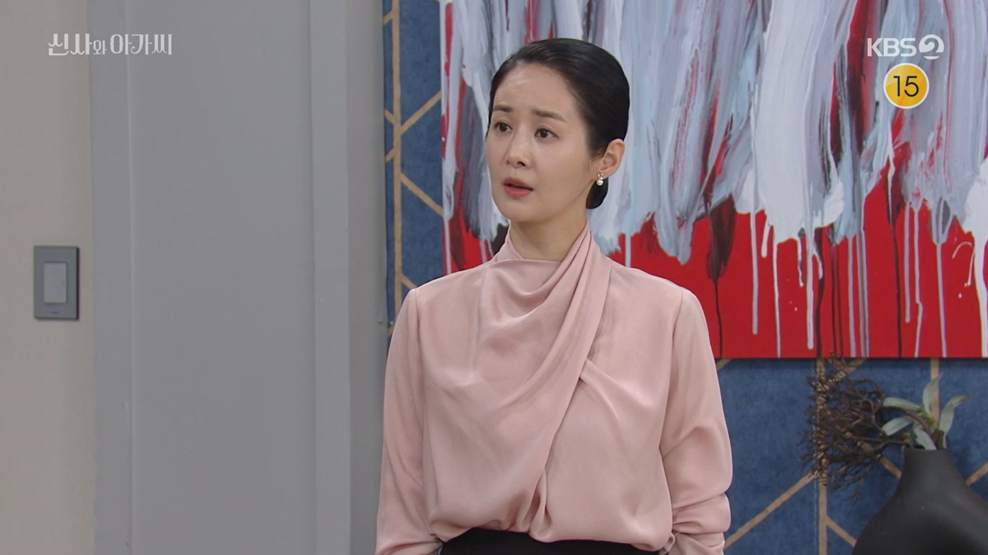 조사라는 이영국의 방에 들어가서는 옷을 골라내는 모습이었어요. 김실장에게 후줄근한 옷들을 버려달라고 했죠. 하지만 김실장은 조사라에게 이 집의 집사는 나라며 회장님이 없을 때 회장님의 방에 맘대로 들어와서 이러지 말라고 했어요. 자기는 회장님 약혼녀이며 회장님의 아이를 가졌다는 조사라의 말은 씨알도 먹히지 않았죠.