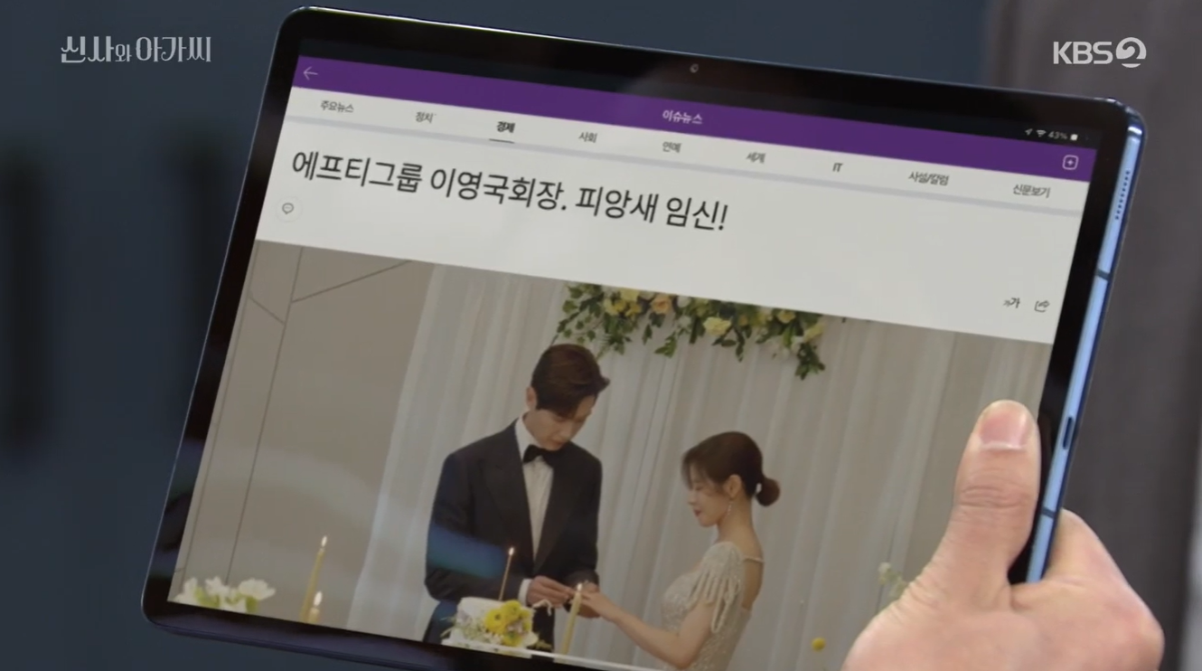 조사라는 이영국 회장의 피앙새가 임신을 했다는 기사를 냅니다.