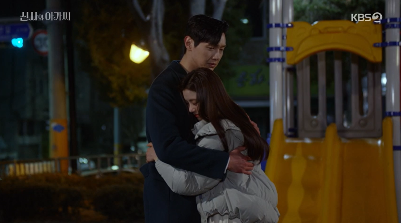 이영국을 뒤늦게 쫓아와서는 제가 어떻게 됐었던 것 같다며 용서를 비는 조사라에게 이영국이 조실장 당신 뱃속의 아이 누구 아이냐고 하는 모습으로 신사와 아가씨 46회는 끝이 납니다.
