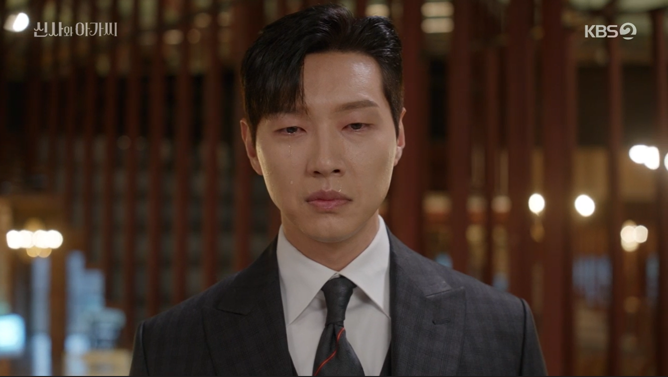 이영국이 그동안 박단단을 밀어냈던 것들을 떠올리며 눈물을 흘리는 모습으로 신사와 아가씨 49회는 끝이 납니다.