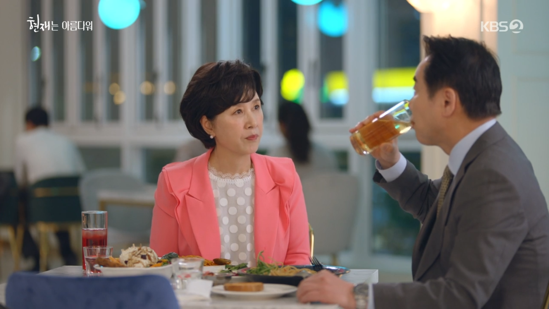 한경애는 이제 남편 이민호만 설득하면 된다 싶었어요. 이민호에게 밥을 사달라며 둘이 먹자고 했죠. 지나가다 만난 최만리에게 시아버지의 식사를 부탁합니다.