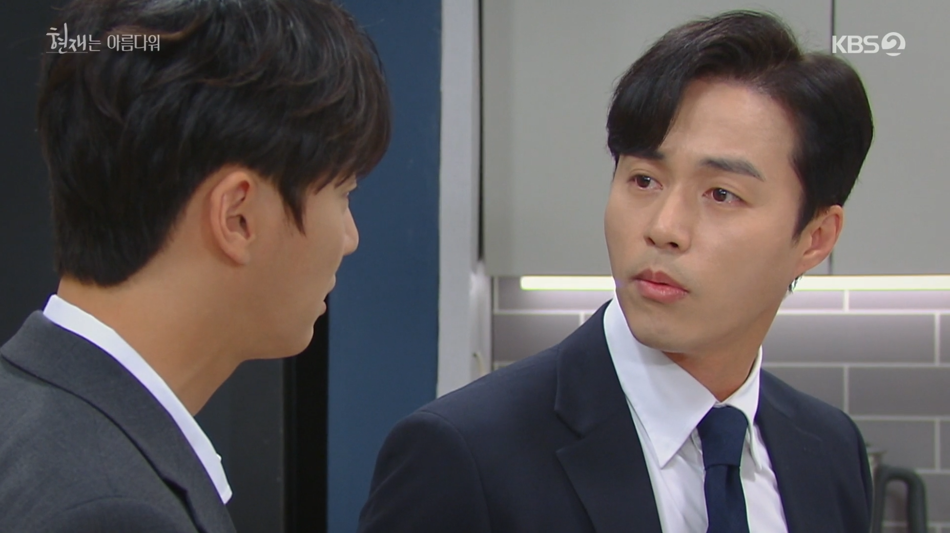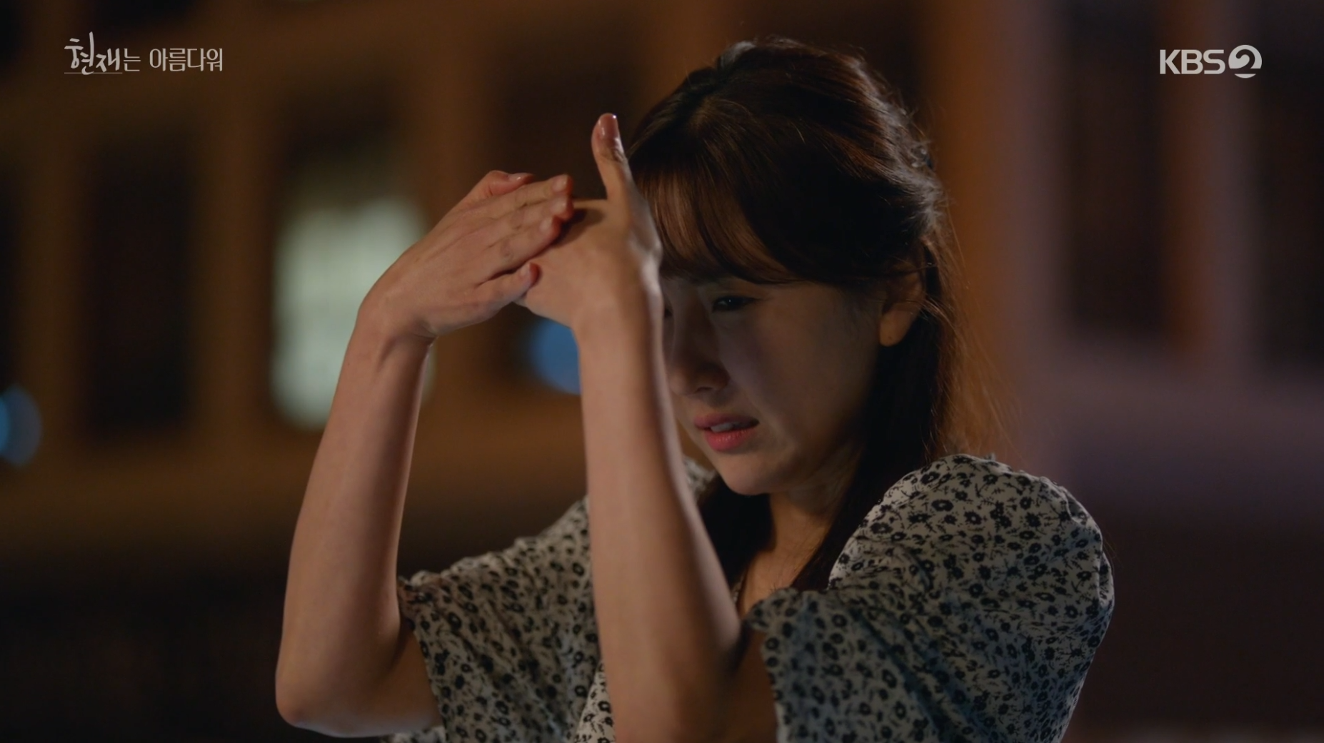 너무나도 당황한 두 사람. 이윤재는 숨으려, 심해준은 숨기려 뛰어다니다 넘어져 묘한 자세가 연출되는 모습으로 현재는 아름다워 20회는 끝이 났습니다.