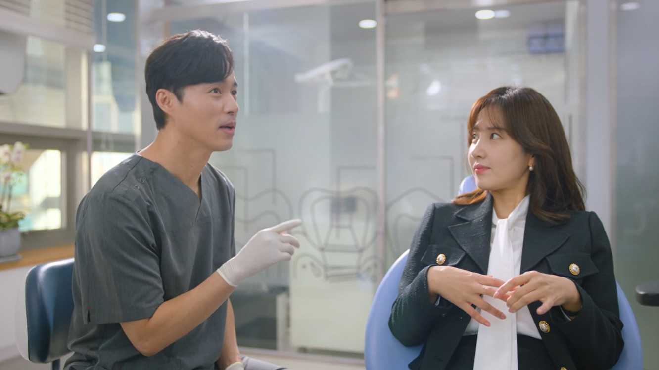 심해준은 또 이윤재 치과에 방문했어요. 첫방문보다는 살갑게 구는 이윤재였죠. 하지만 심대표님은 저보다 나이가 많으시다느니 여자라기보다 선배님이라느니 하는 소리가 거슬리는 심해준이었습니다.