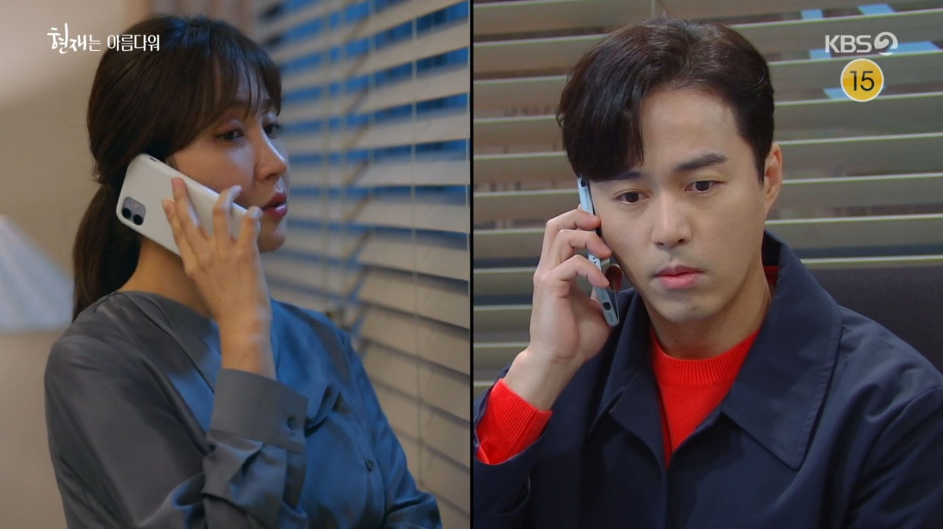 현미래는 고객에게 도움을 주기 위해 조언을 구하러 이현재에게 전화를 걸었어요. 하지만 어째 뜨뜨미지근한 이현재의 반응에 실망한듯한 현미래였죠.
